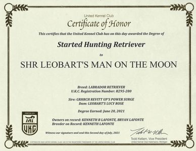 The Labrador Retriever Club sets the minimum necessary health clearances expected from reputable breeders of Labrador Retrievers. A dog must have these health clearances to receive a CHIC number from the Canine Health Information Center. Apollo has all of these clearances and more. His required clearances are all registered with the OFA (view registry) and his CHIC number is 165620.