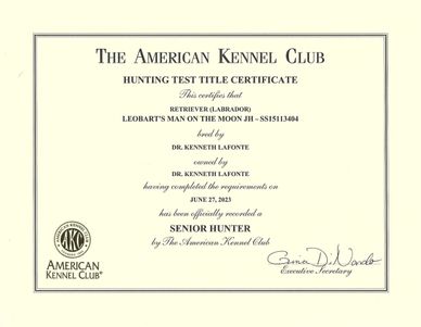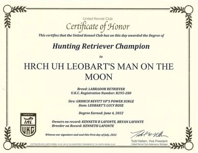 Apollo passed his third HRC Seasoned Hunt Test and earned his HR title. Three Rivers Hunting Retriever Club hosted the test at their grounds in Washington County, Oklahoma. Chad Kirkman and Wade Scroggins judged the test.